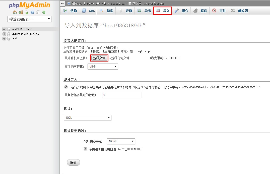 注:本地sql文件必須是在新網(wǎng)的MySQL服務(wù)器下使用phpmyadmin備份的數(shù)據(jù)庫(kù)。